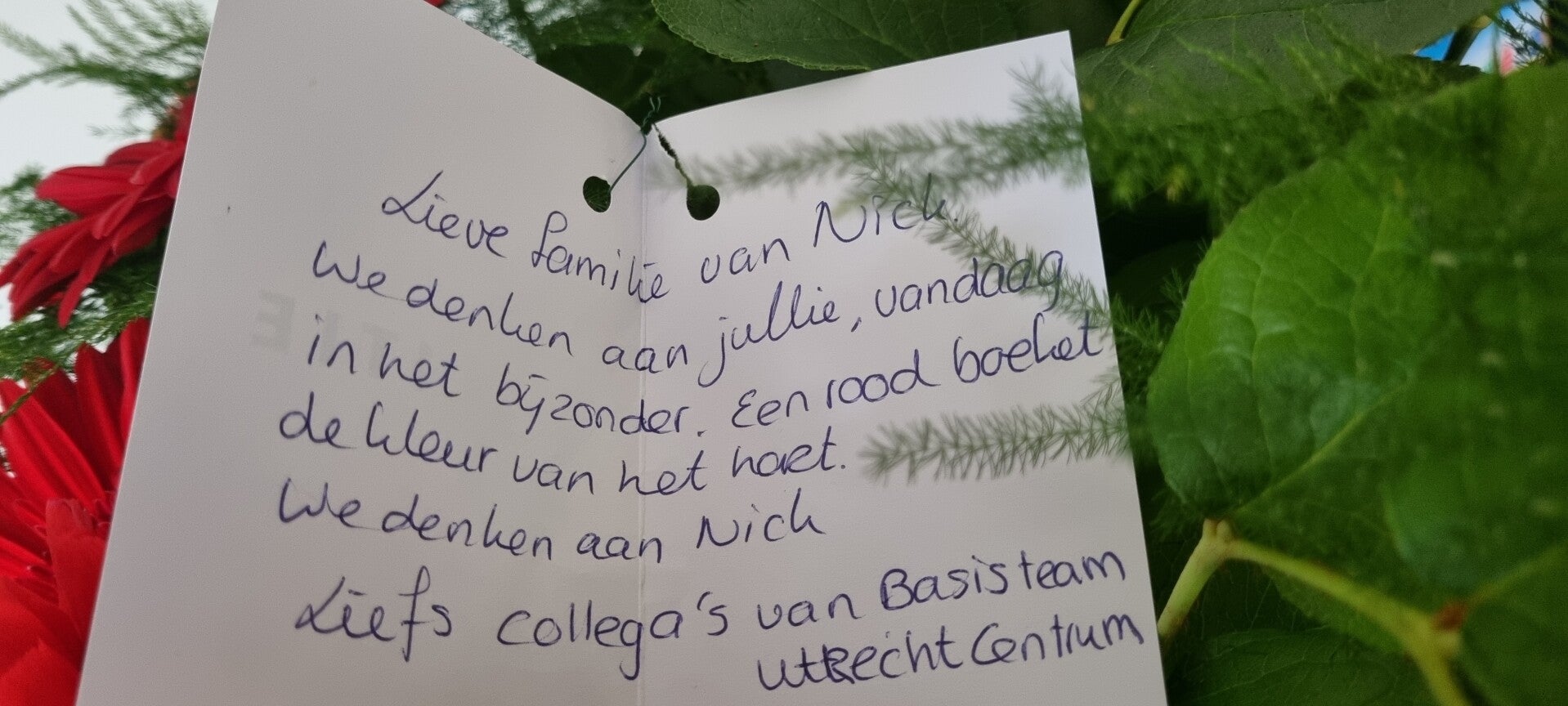 Alweer 1 jaar, een veelbewogen jaar, voorbij die zonnige zondag waarop jij, opgewekt en vrolijk, wegreed van huis. Vandaag leggen we extra mooie bloemen Nick. En gedenken wij jou. Met elkaar, als gezin. Troosten we ons met onze herinneringen, het plezier en de levendigheid waarmee je ons omringde. Dat is heel veel troost...dat geeft heel veel kracht....dankjewel....